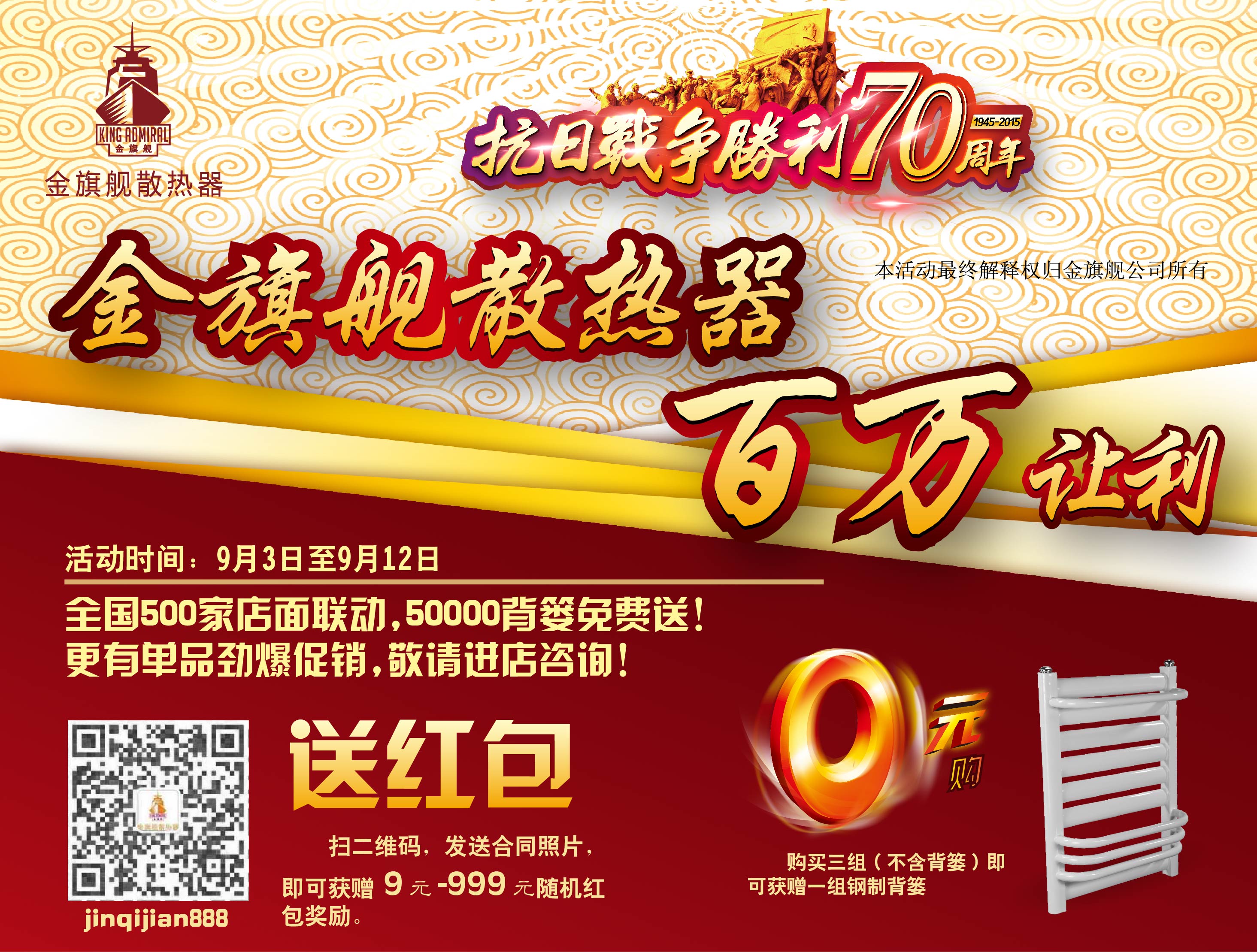 名稱: 慶祝70年抗戰(zhàn)勝利,金旗艦散熱器百萬(wàn)讓利
