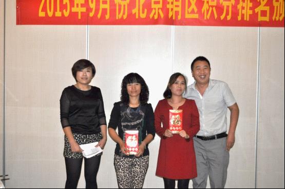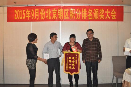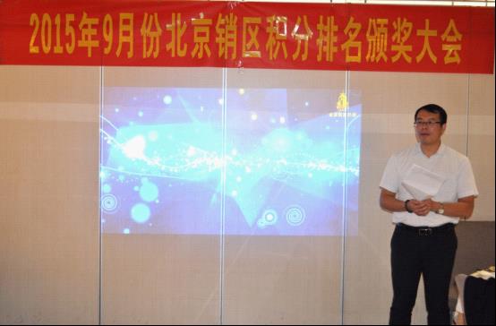 會(huì)議的第二階段,大會(huì)隆重舉行了2015年度9月份北京區(qū)積分排名頒獎(jiǎng)儀式,將大會(huì)氛圍推向最高潮,獲獎(jiǎng)的朋友們喜不自勝,在現(xiàn)場(chǎng)熱烈的掌聲中分享獲獎(jiǎng)感言以及優(yōu)秀的經(jīng)營(yíng)理念。未獲獎(jiǎng)的朋友紛紛表示,將積極進(jìn)取做好北京區(qū)市場(chǎng)銷售,下次走上領(lǐng)獎(jiǎng)臺(tái)。